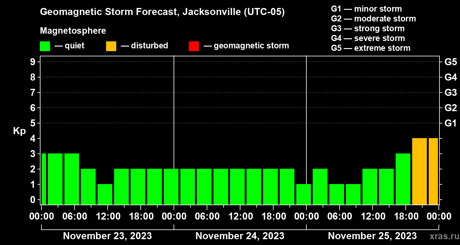 Geomagnetic storm forecast in Jacksonville for Nov 23, 2023