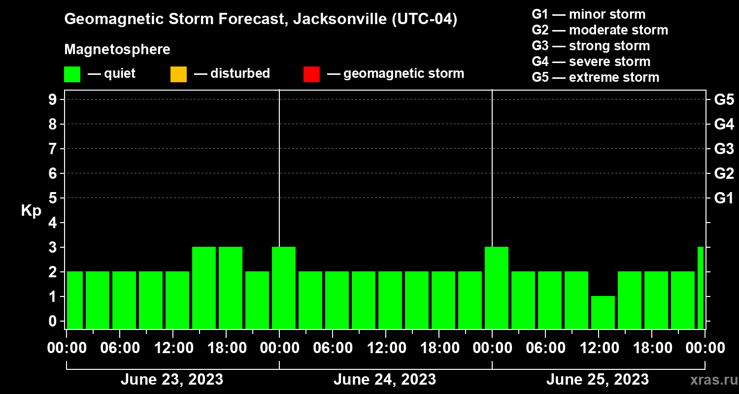Geomagnetic storm forecast in Jacksonville for Jun 23, 2023