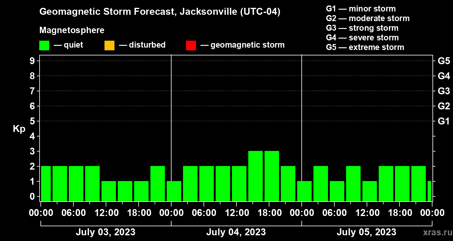 Geomagnetic storm forecast in Jacksonville for Jul 03, 2023