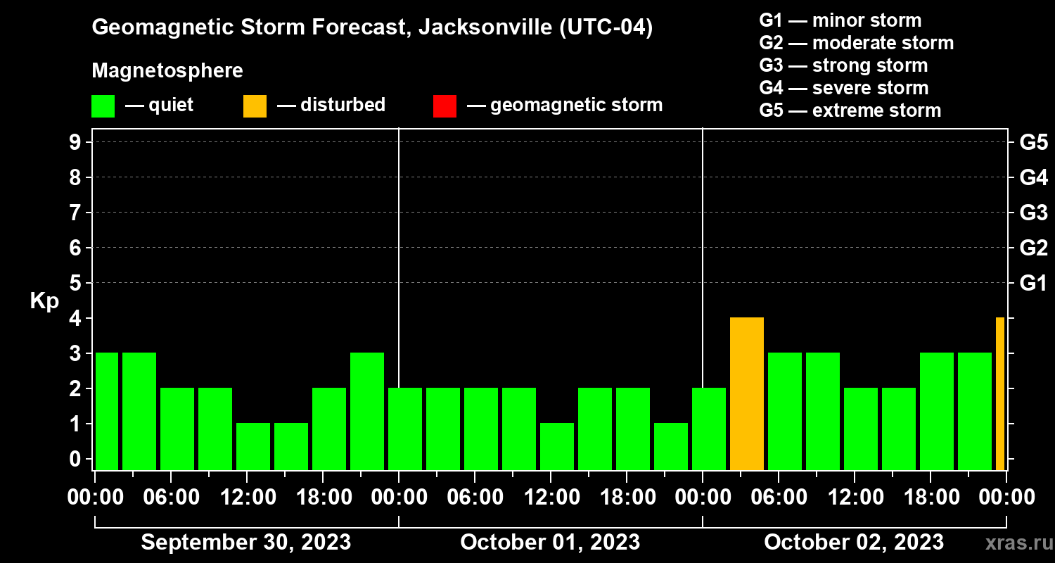 Geomagnetic storm forecast in Jacksonville for Sep 30, 2023