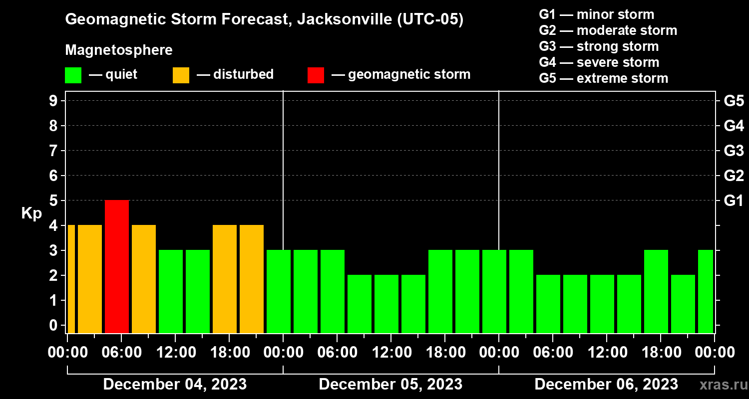 Geomagnetic storm forecast in Jacksonville for Dec 04, 2023
