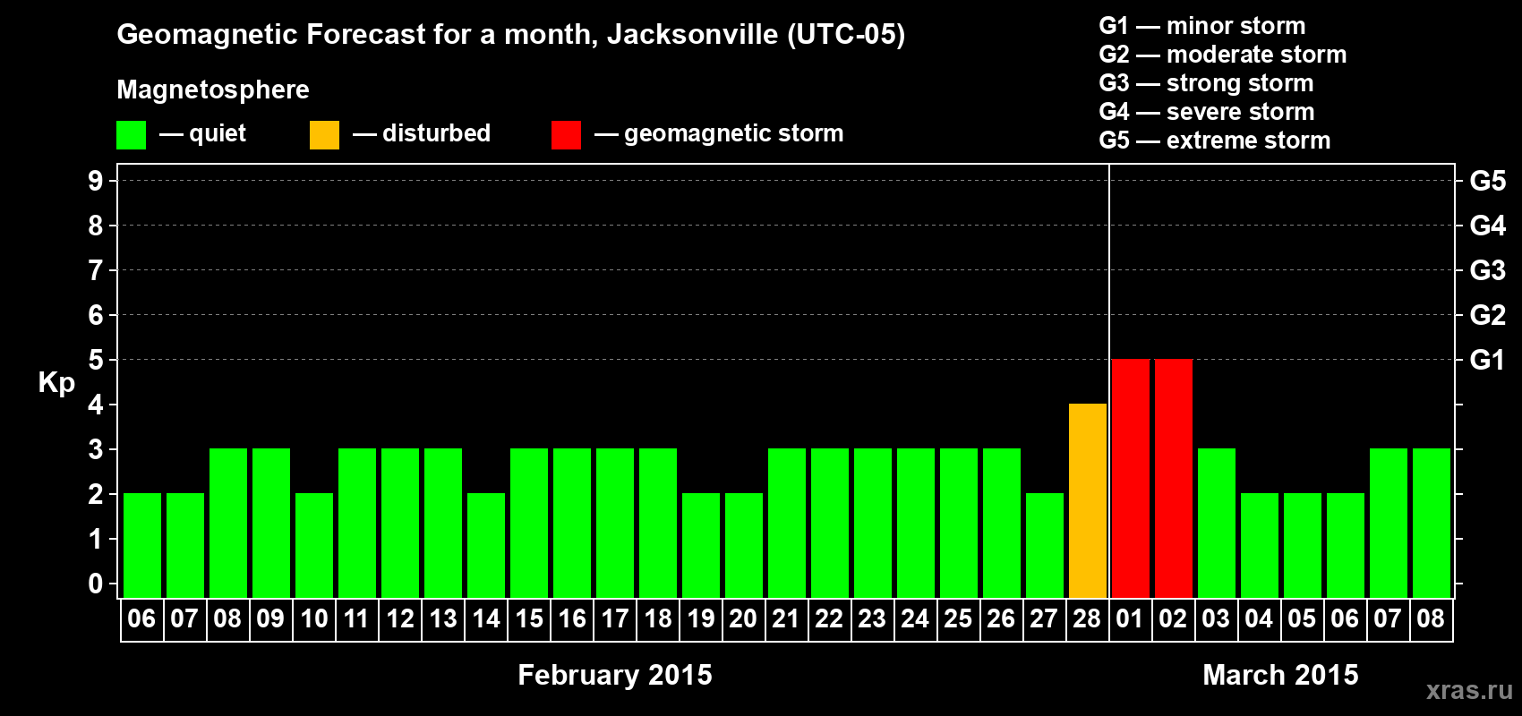 Geomagnetic storm forecast in Jacksonville for Feb 06, 2015