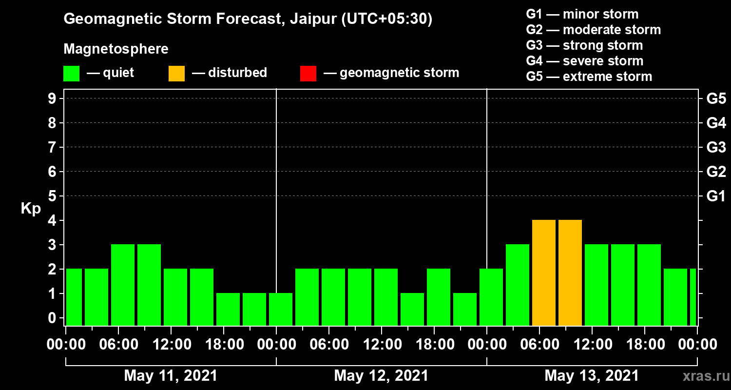 Geomagnetic activity forecast in Jaipur — May 11, 2021