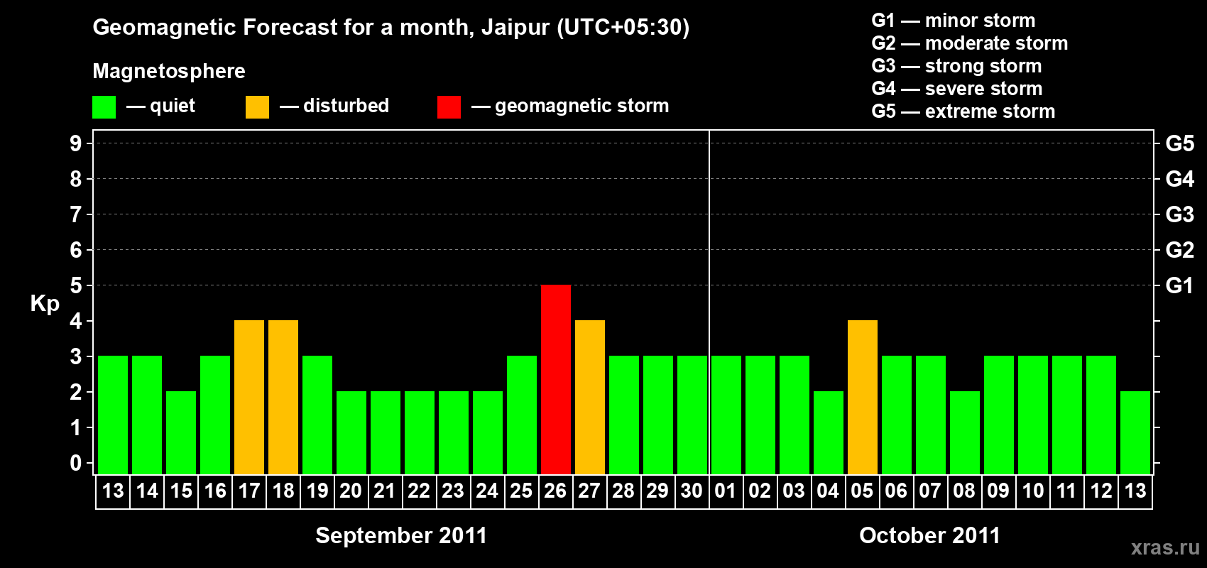 Geomagnetic storm forecast in Jaipur for Sep 13, 2011
