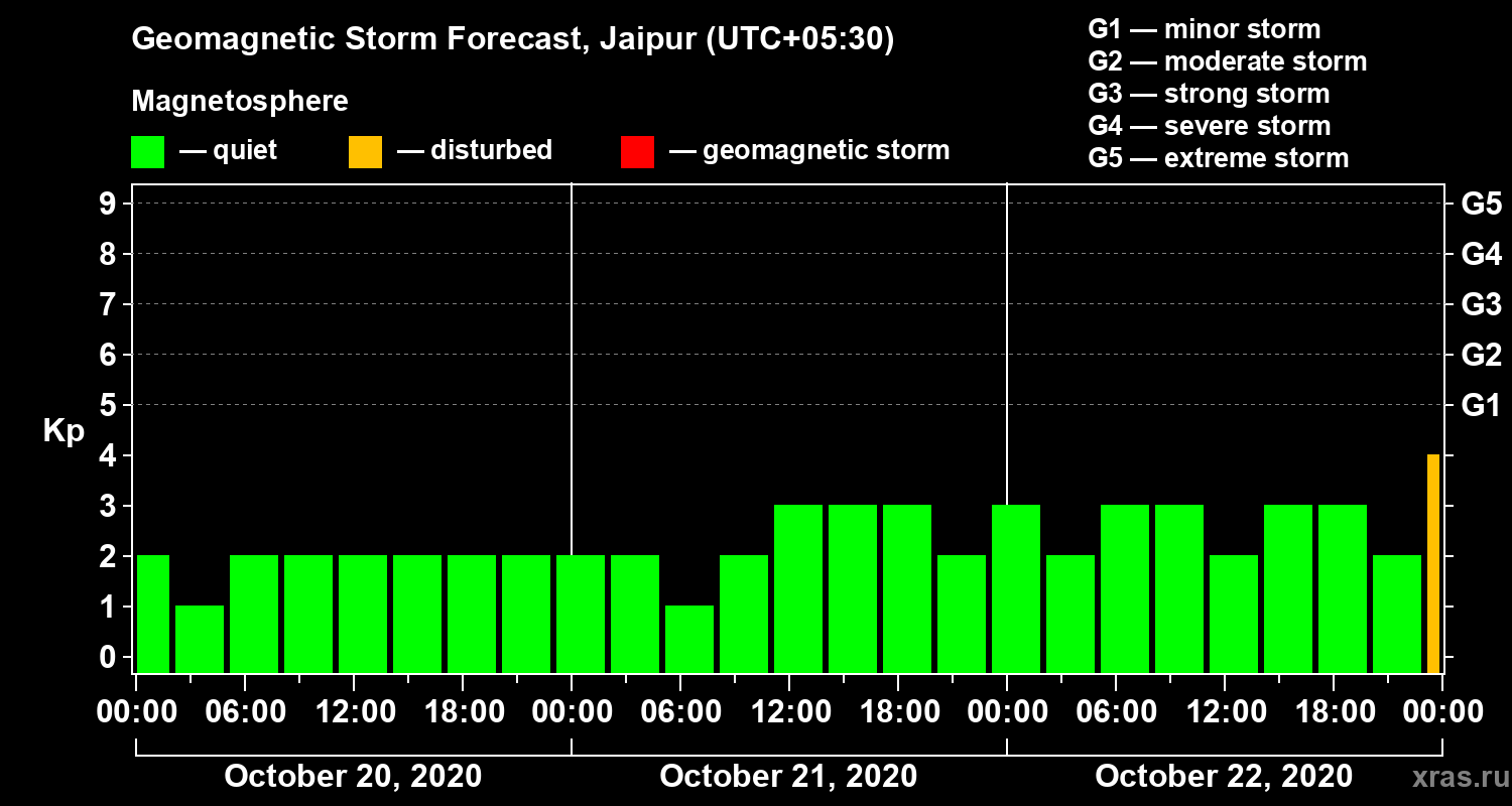 Geomagnetic storm forecast in Jaipur for Oct 20, 2020