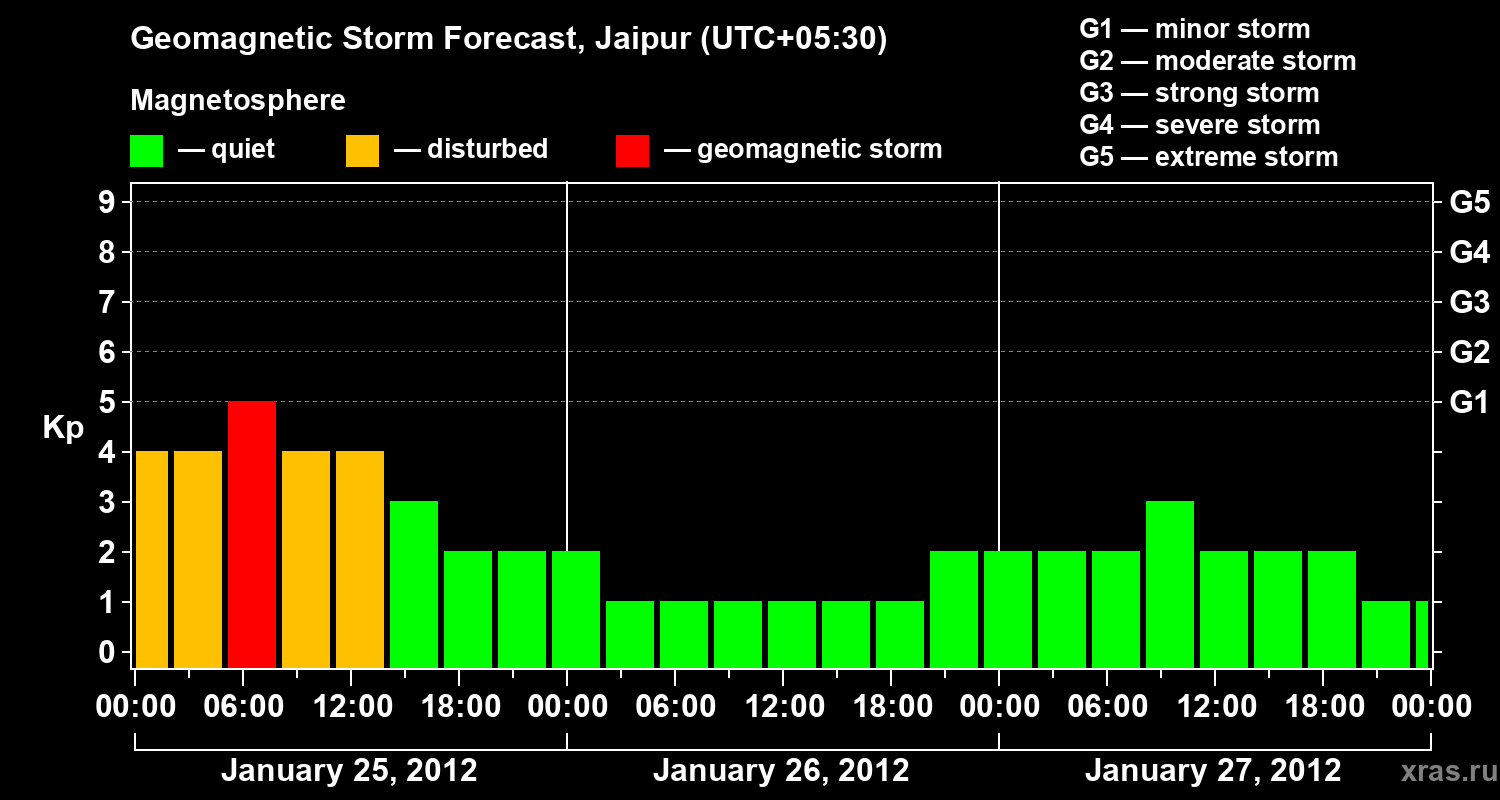 Geomagnetic storm forecast in Jaipur for Jan 25, 2012