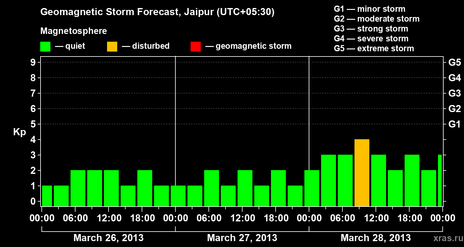 Geomagnetic storm forecast in Jaipur for Mar 26, 2013