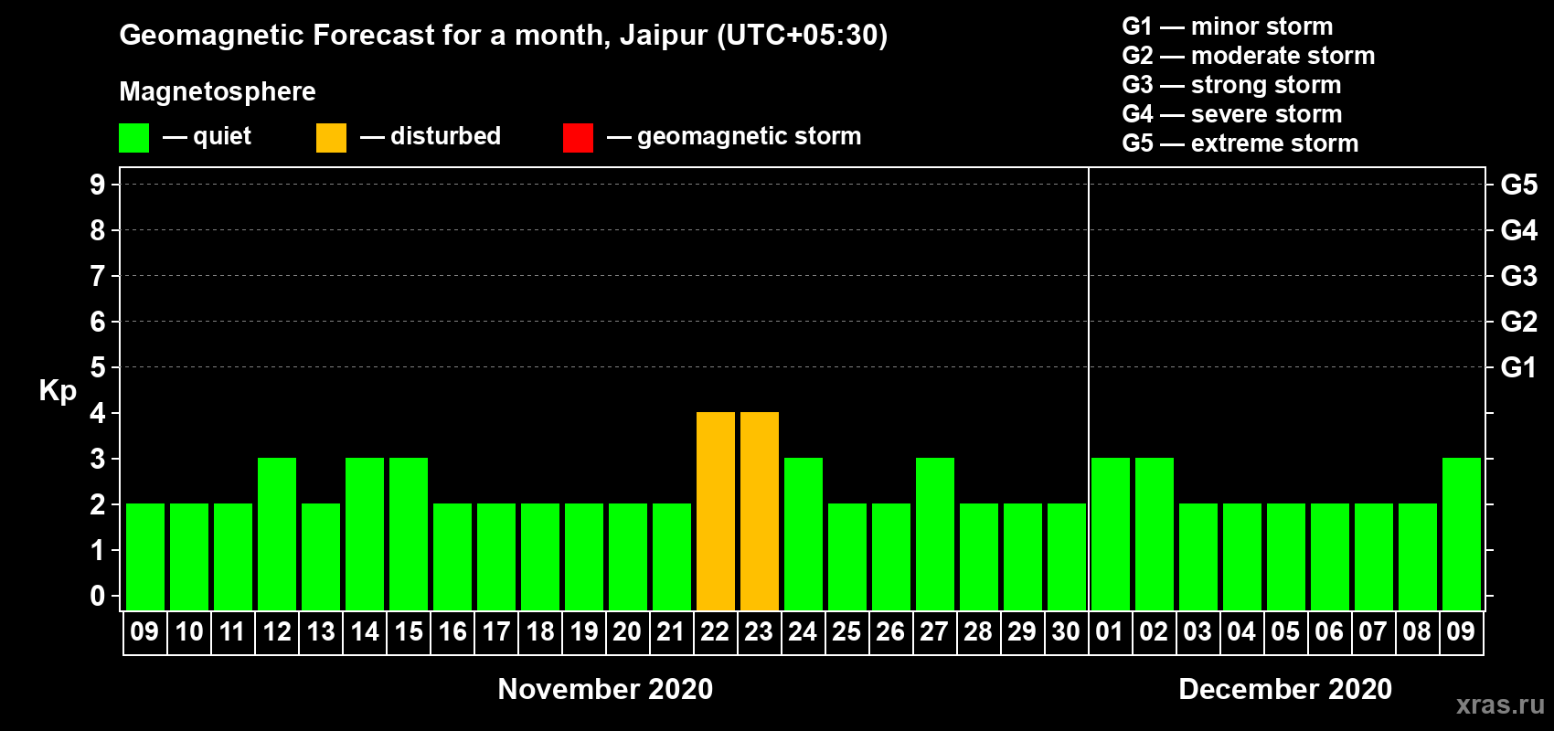 Geomagnetic activity forecast in Jaipur — Nov 09, 2020