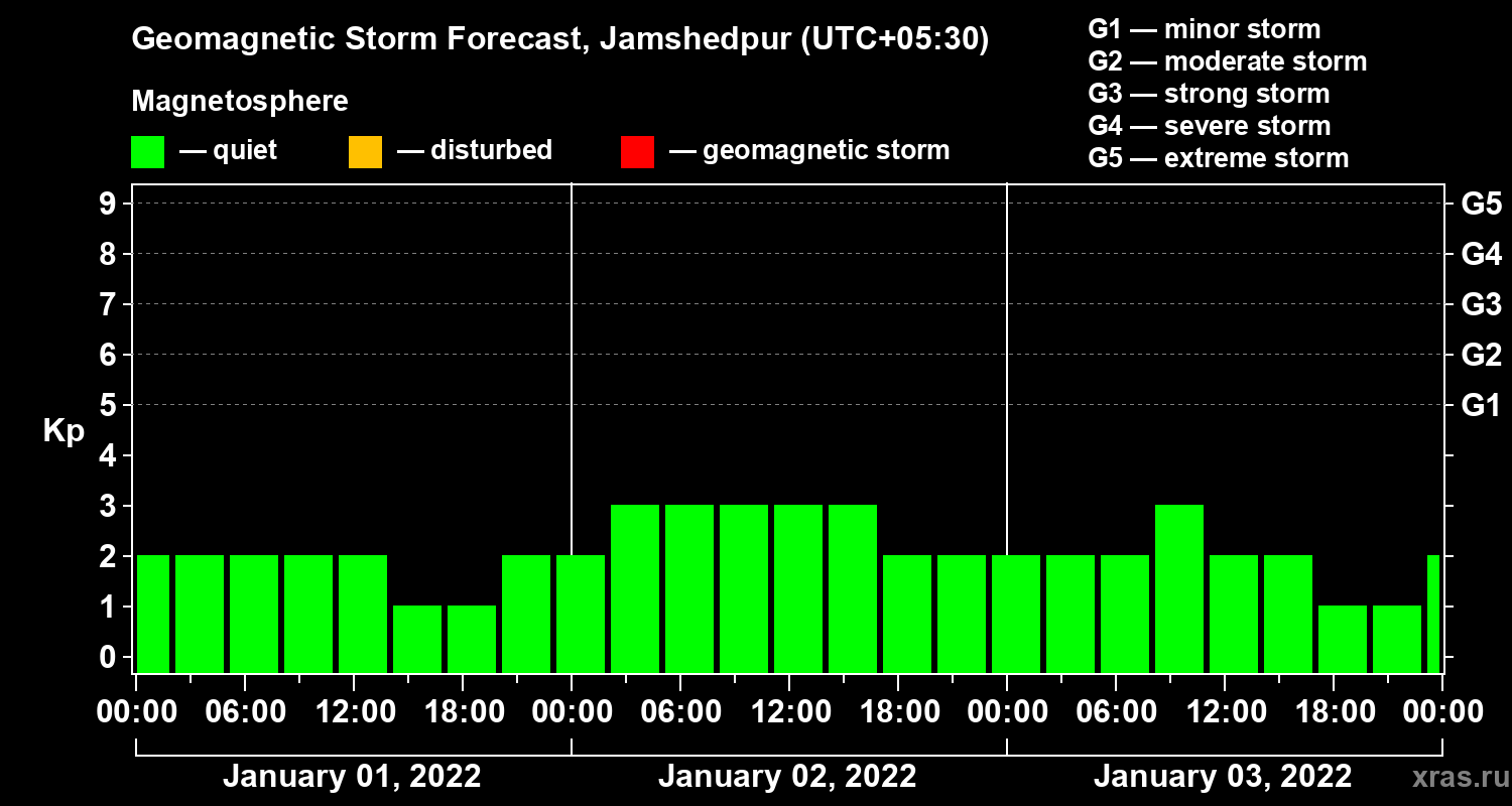 Geomagnetic storm forecast in Jamshedpur for Jan 01, 2022