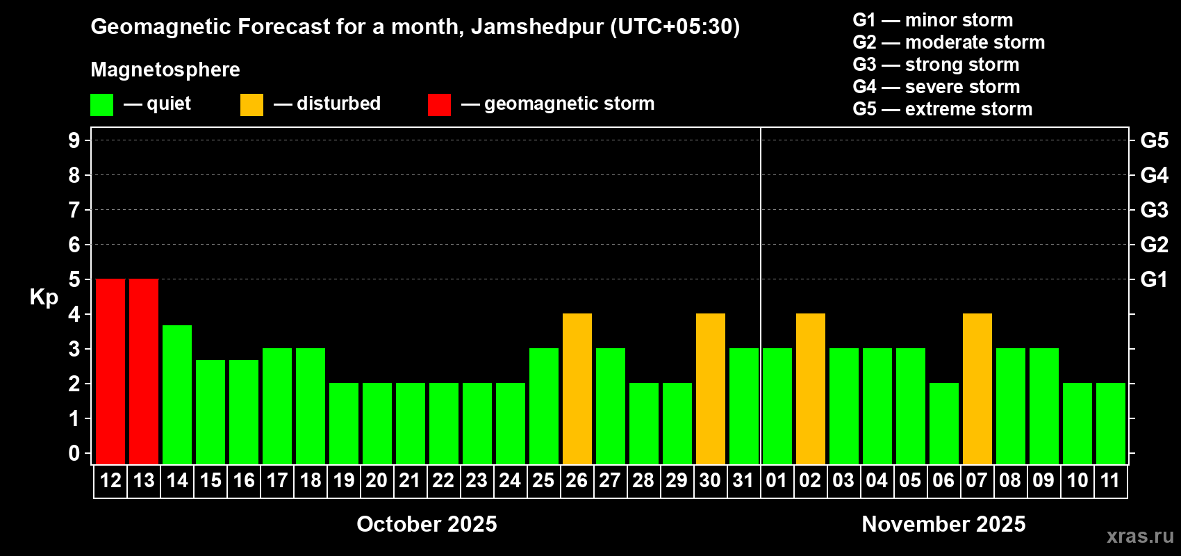 Geomagnetic storm forecast in Jamshedpur for Oct 12, 2025
