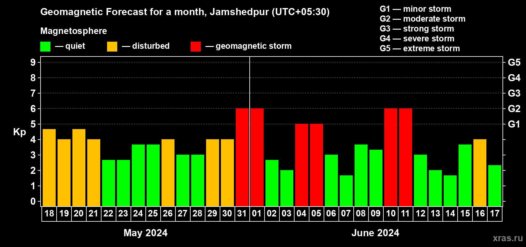 Geomagnetic storm forecast in Jamshedpur for May 18, 2024