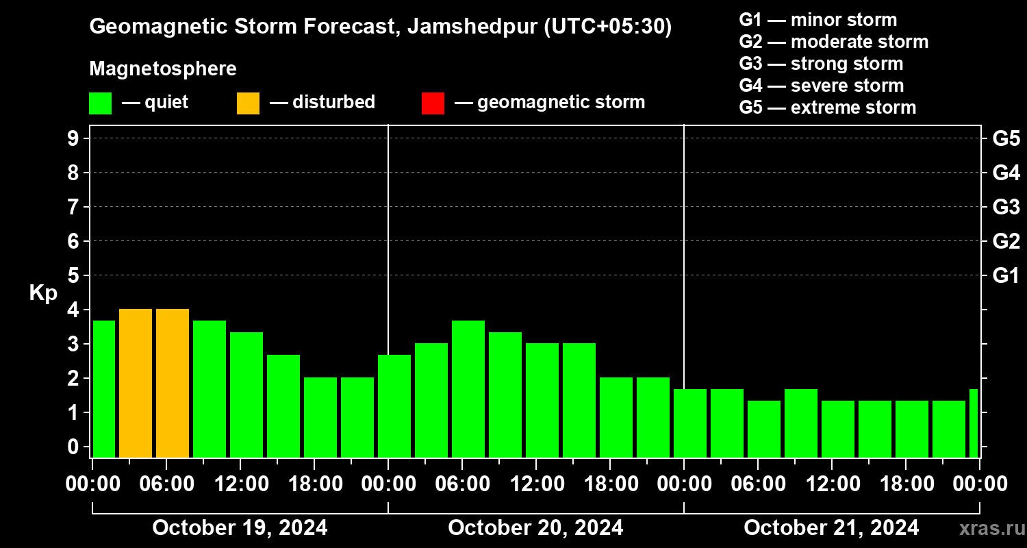 Geomagnetic storm forecast in Jamshedpur for Oct 19, 2024
