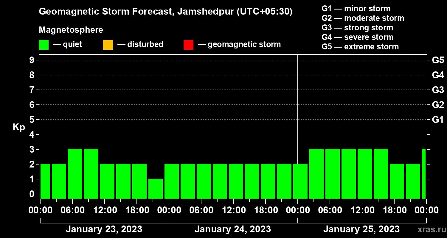 Geomagnetic storm forecast in Jamshedpur for Jan 23, 2023