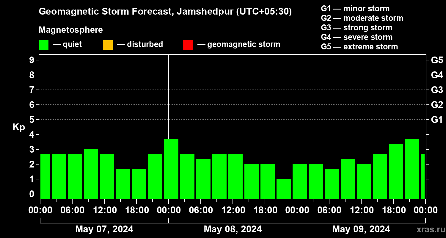 Geomagnetic storm forecast in Jamshedpur for May 07, 2024