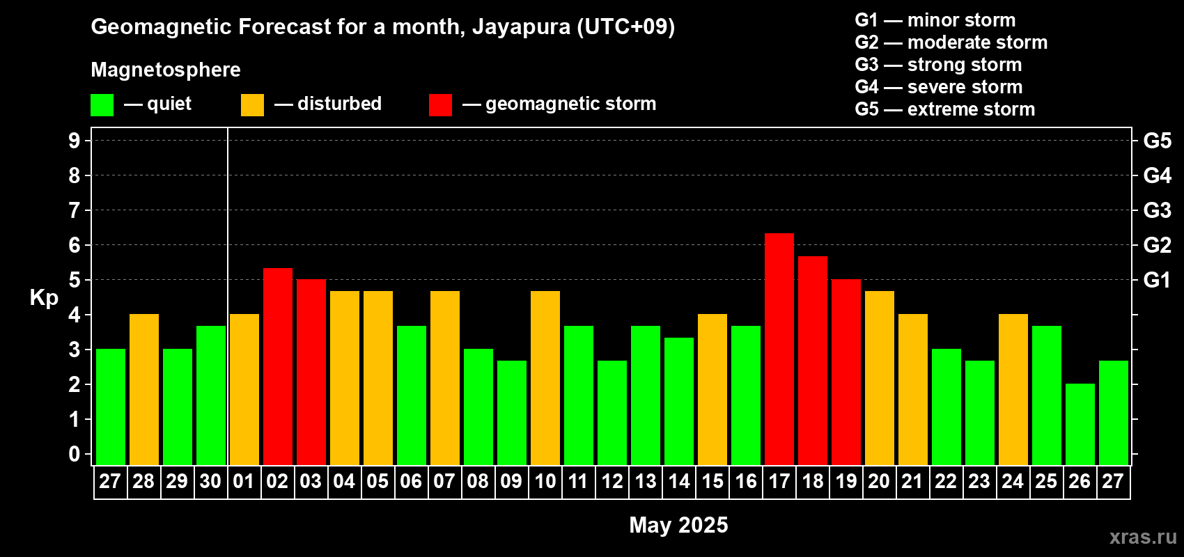 Geomagnetic storm forecast in Jayapura for Apr 27, 2025
