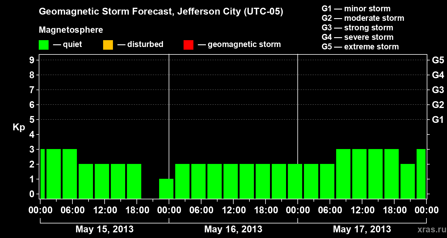 Geomagnetic storm forecast in Jefferson City for May 15, 2013