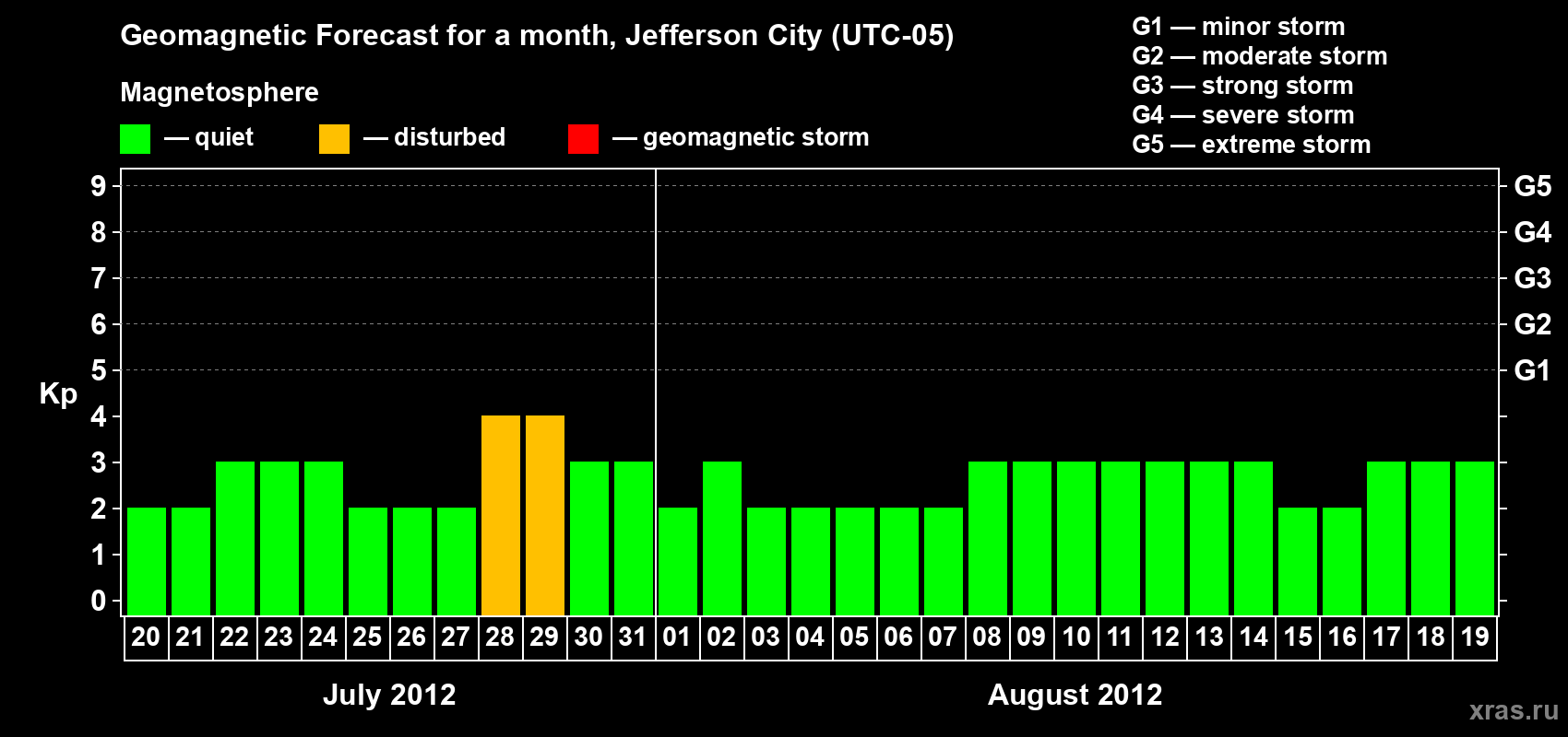 Geomagnetic storm forecast in Jefferson City for Jul 20, 2012