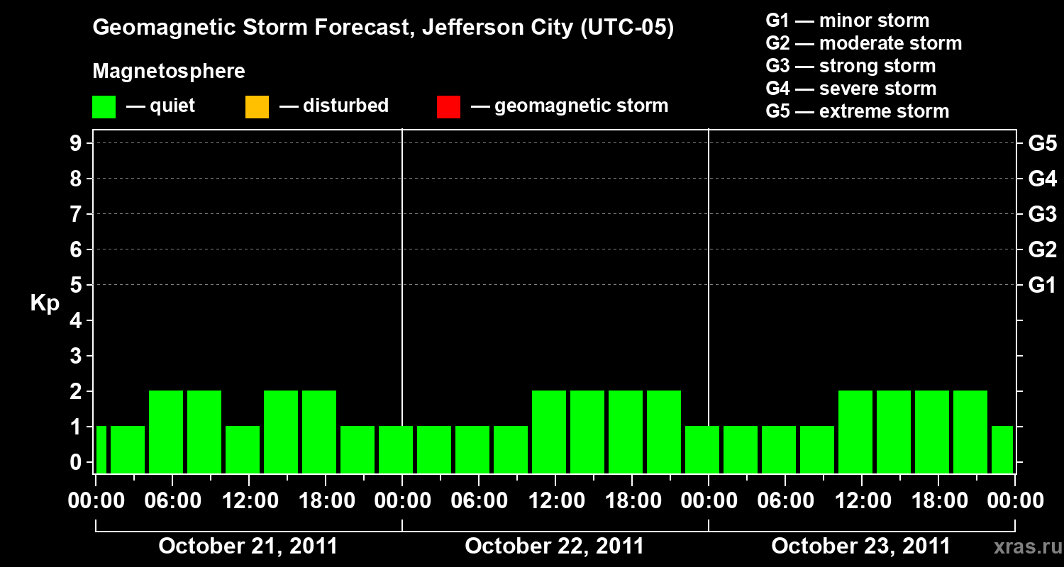 Geomagnetic storm forecast in Jefferson City for Oct 21, 2011