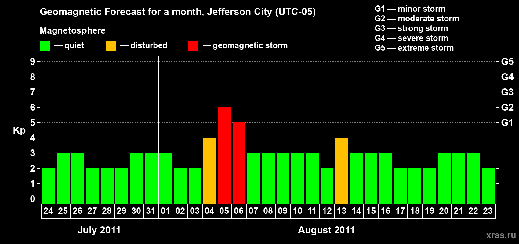 Geomagnetic storm forecast in Jefferson City for Jul 24, 2011