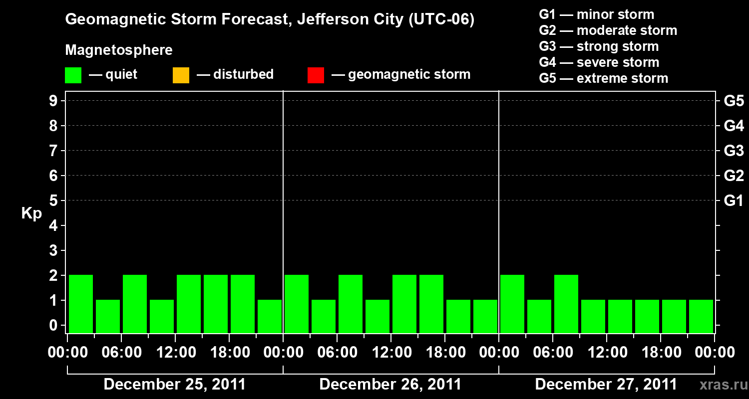 Geomagnetic storm forecast in Jefferson City for Dec 25, 2011