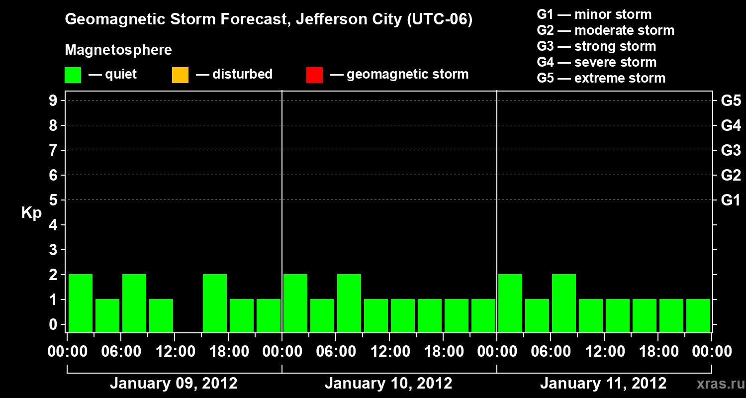 Geomagnetic storm forecast in Jefferson City for Jan 09, 2012