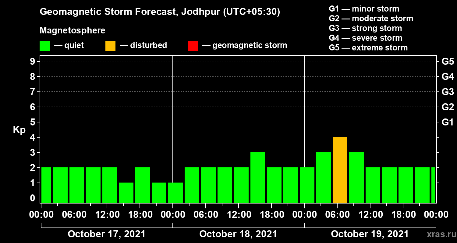 Geomagnetic activity forecast in Jodhpur — Oct 17, 2021