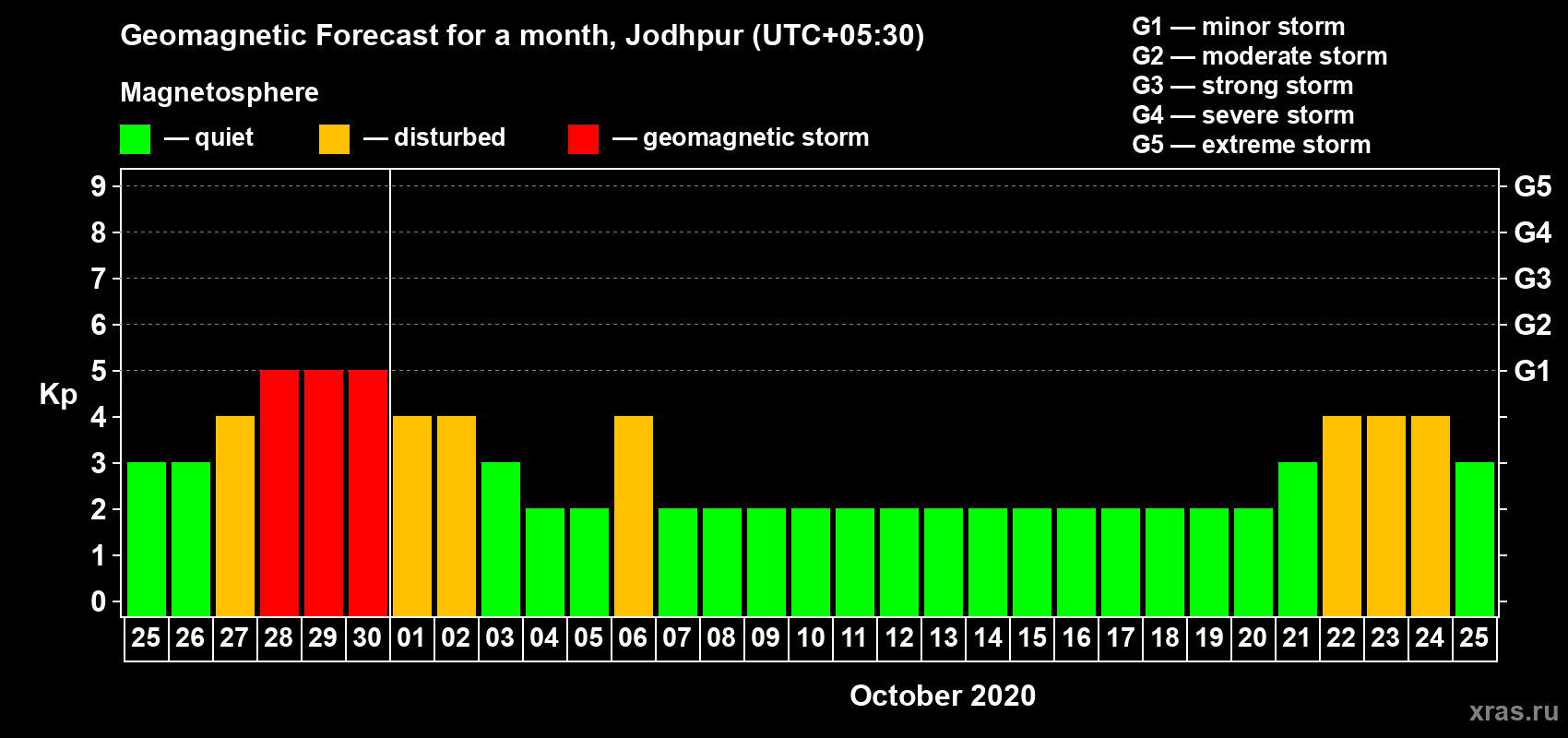 Geomagnetic activity forecast in Jodhpur — Sep 25, 2020