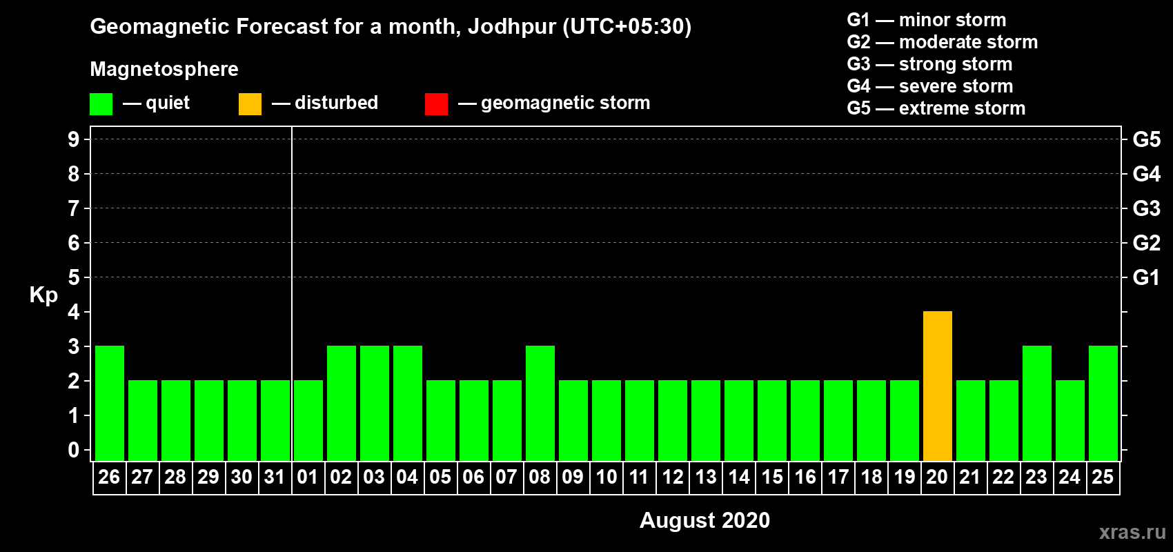 Geomagnetic storm forecast in Jodhpur for Jul 26, 2020