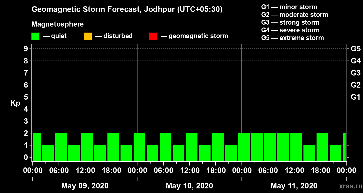 Geomagnetic activity forecast in Jodhpur — May 09, 2020