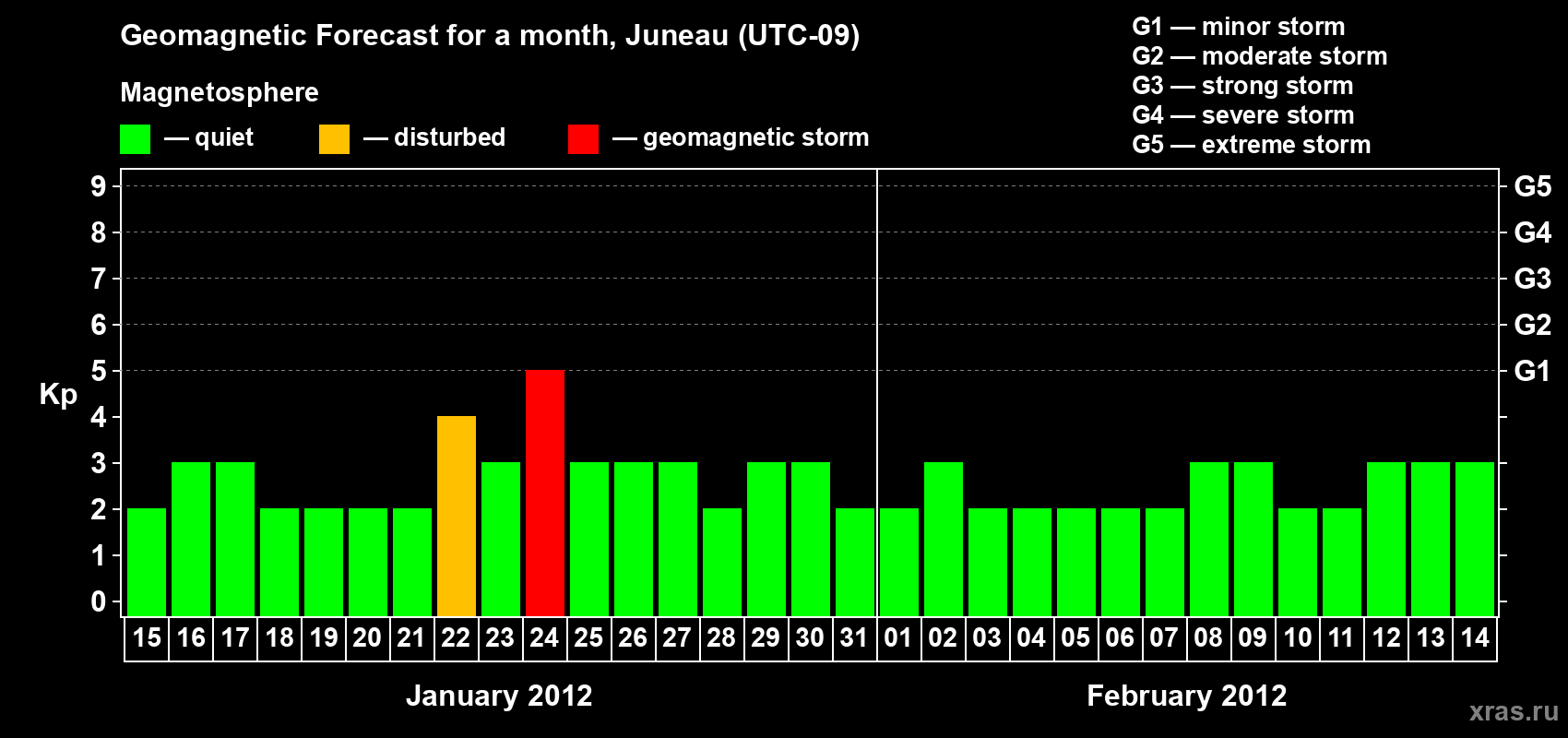 Geomagnetic storm forecast in Juneau for Jan 15, 2012