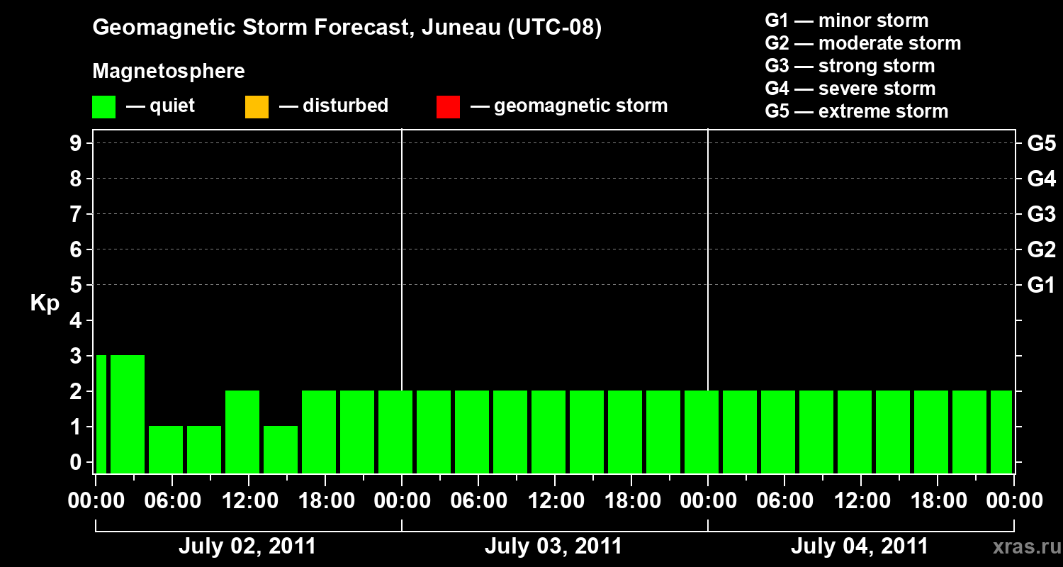 Geomagnetic storm forecast in Juneau for Jul 02, 2011