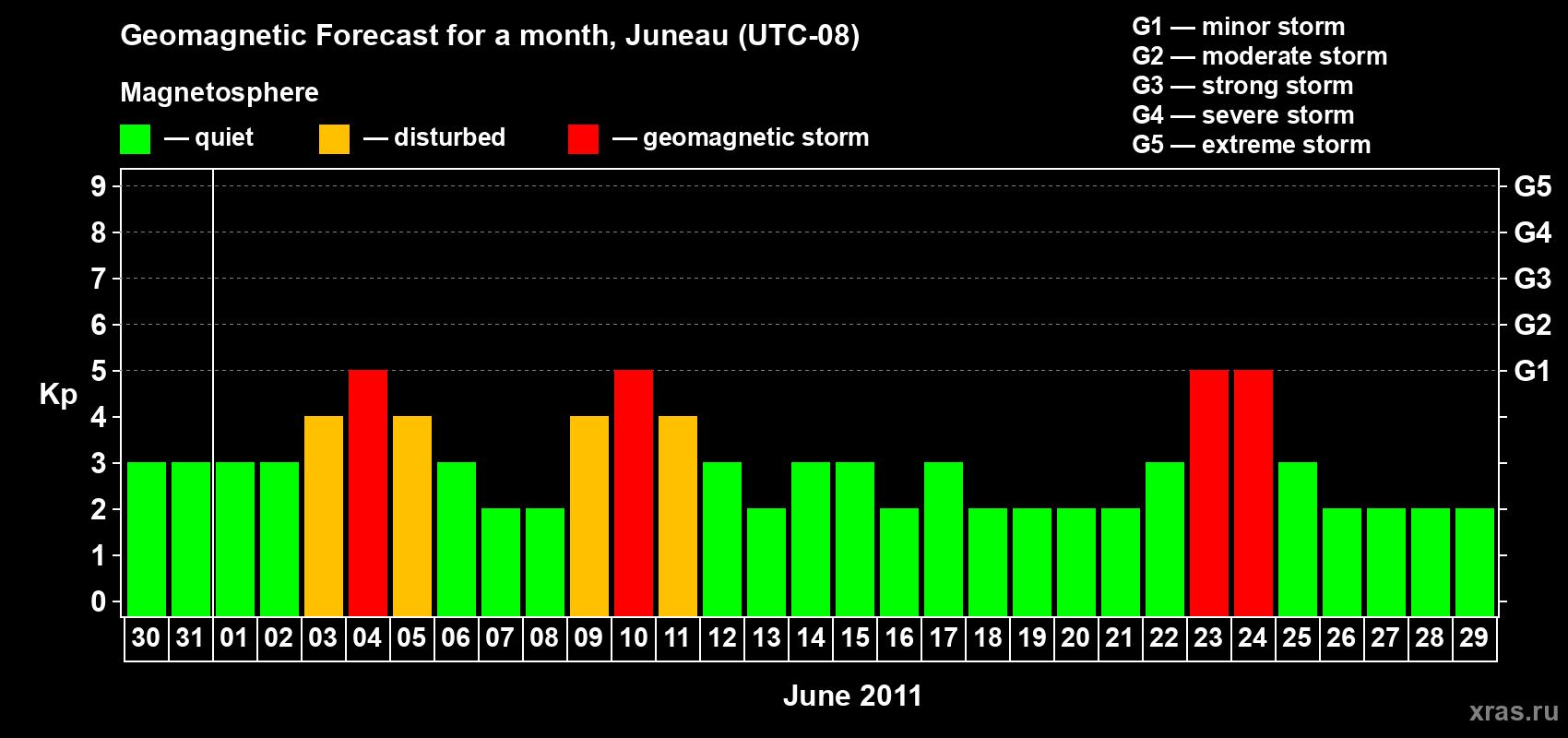 Geomagnetic storm forecast in Juneau for May 30, 2011