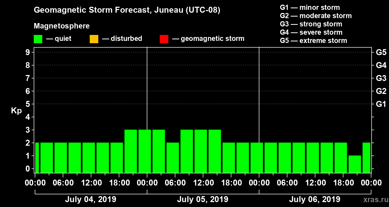 Geomagnetic storm forecast in Juneau for Jul 04, 2019