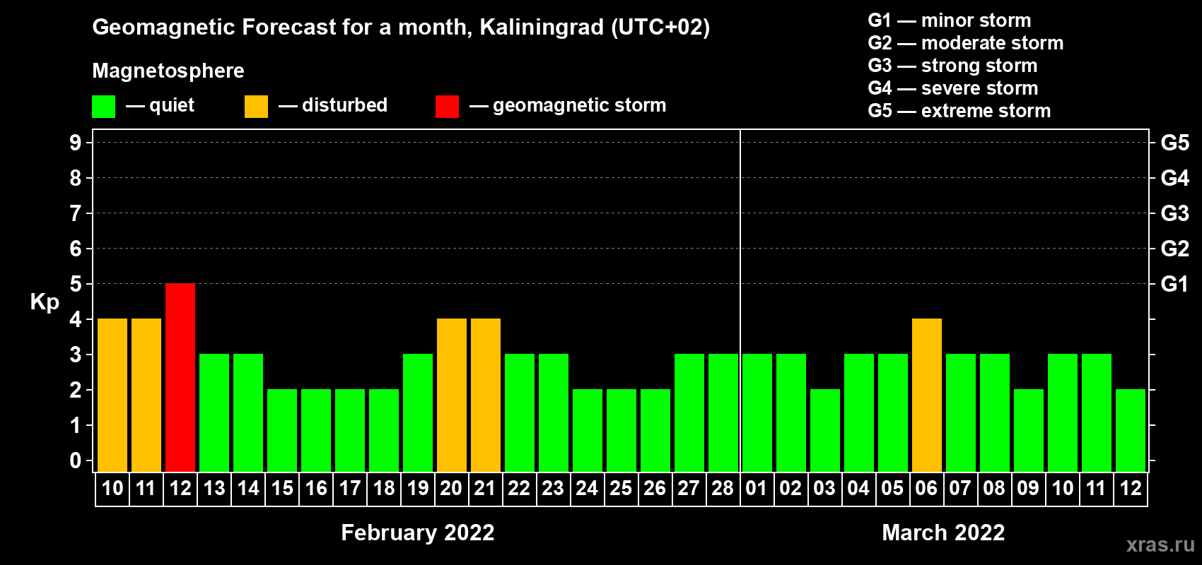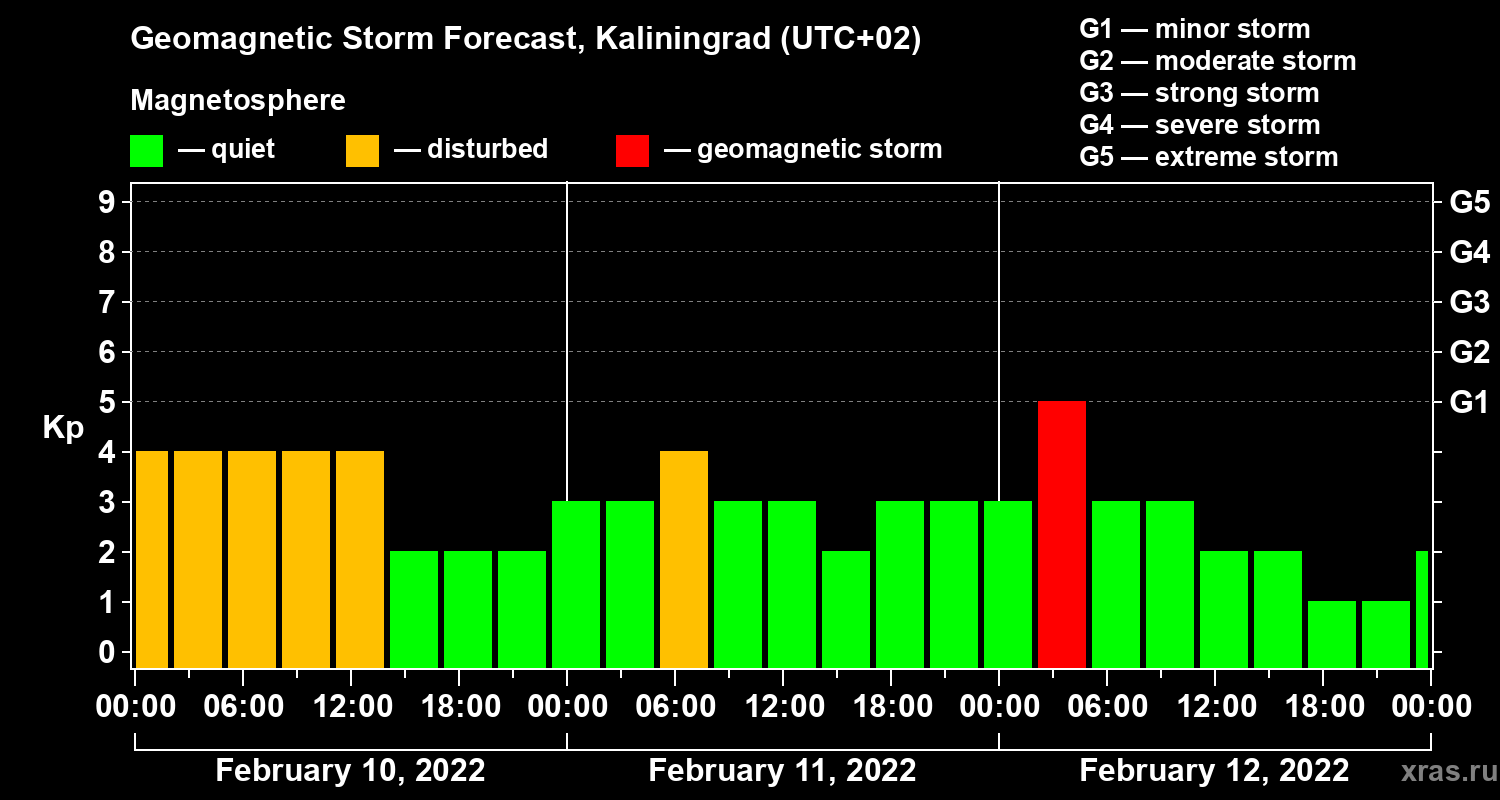 Geomagnetic activity forecast in Kaliningrad — Feb 10, 2022