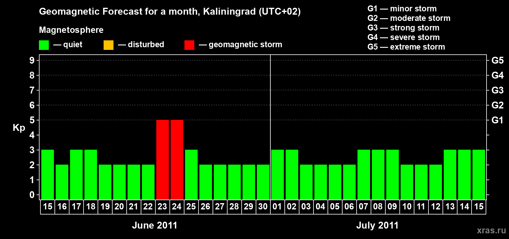 Geomagnetic activity forecast in Kaliningrad — Jun 15, 2011