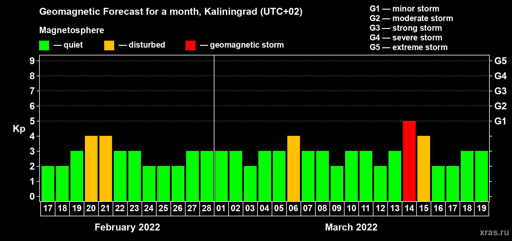 Geomagnetic activity forecast in Kaliningrad — Feb 17, 2022