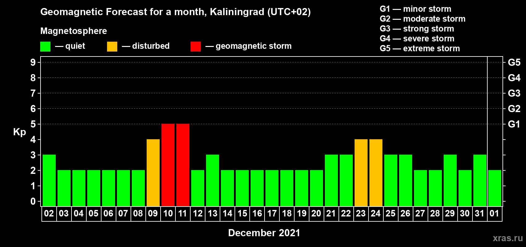Geomagnetic activity forecast in Kaliningrad — Dec 02, 2020
