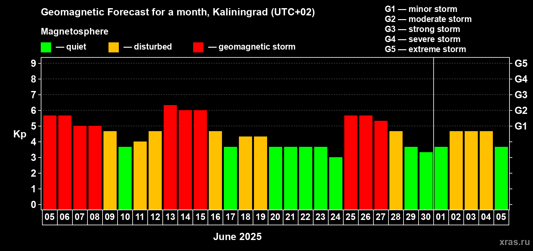 Geomagnetic storm forecast in Kaliningrad for Jun 05, 2025