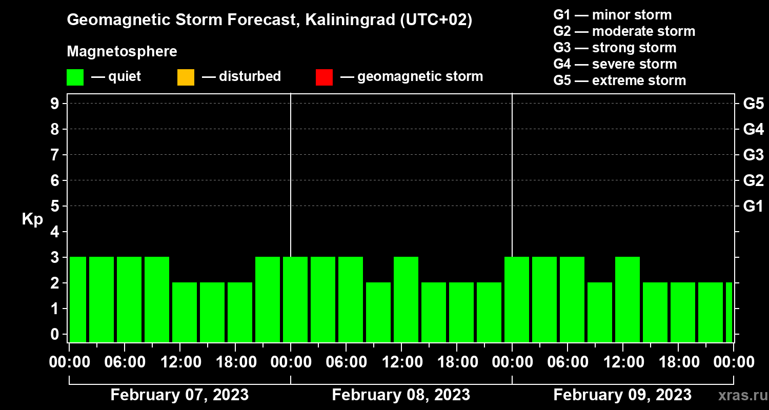 Geomagnetic activity forecast in Kaliningrad — Feb 07, 2023