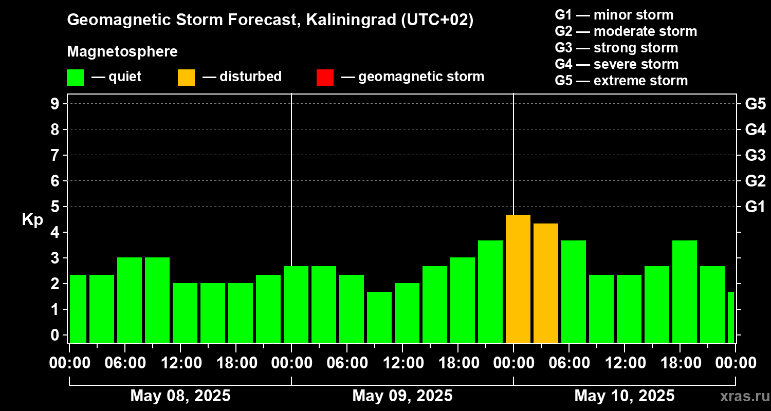 Geomagnetic activity forecast in Kaliningrad — May 08, 2025