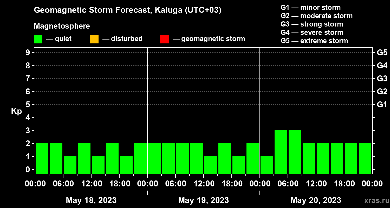Geomagnetic activity forecast in Kaluga — May 18, 2023