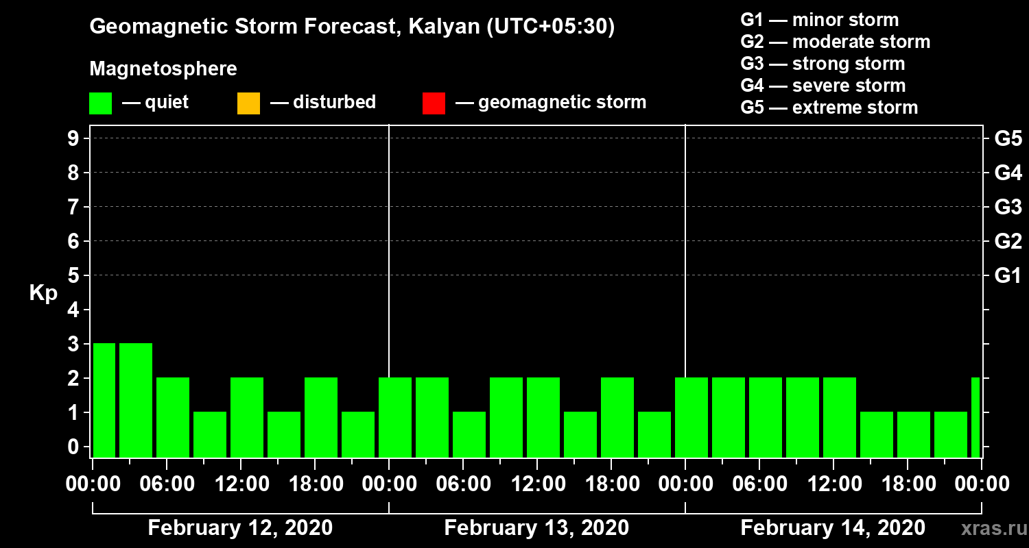 Geomagnetic storm forecast in Kalyan for Feb 12, 2020