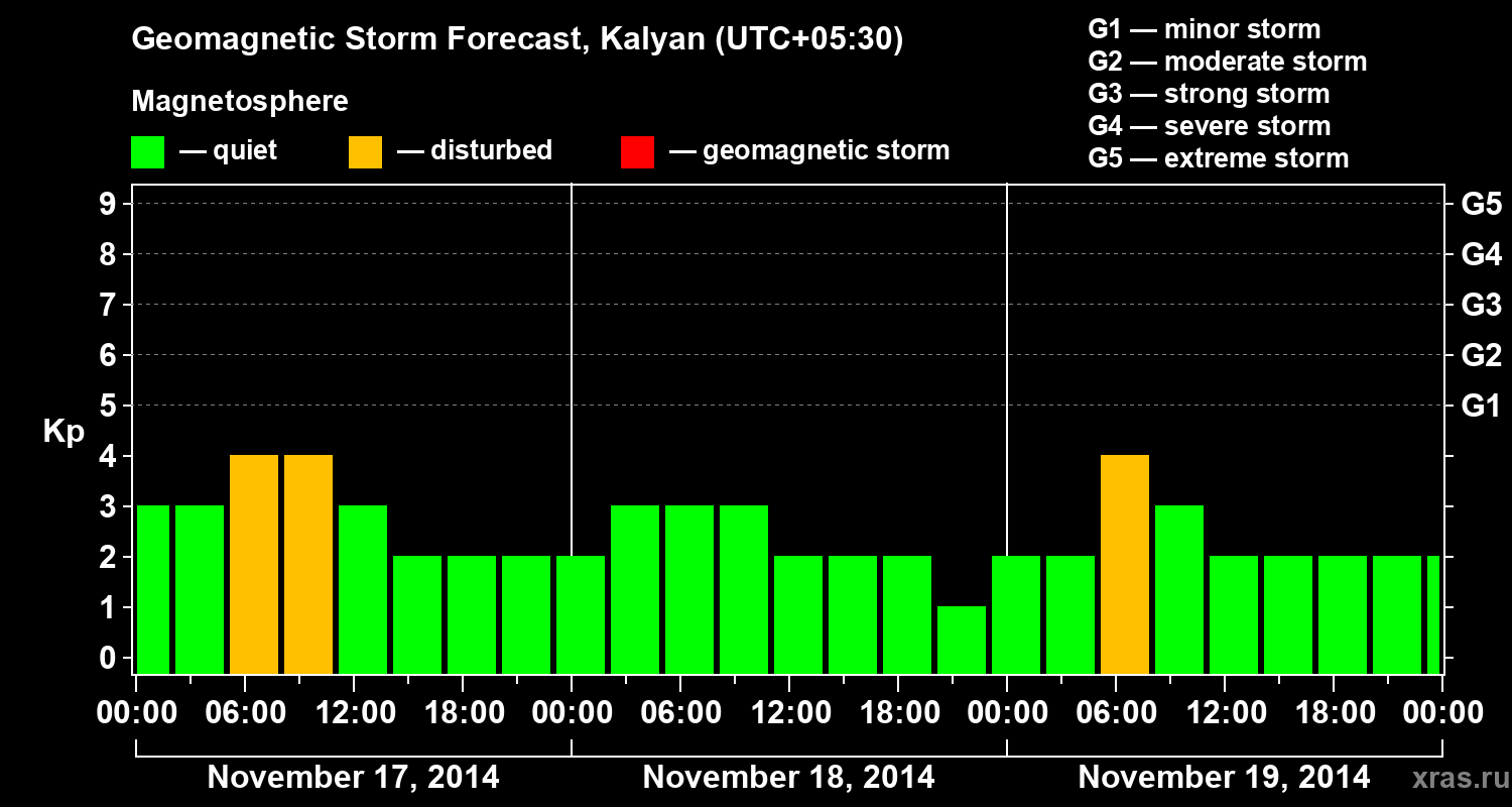 Geomagnetic storm forecast in Kalyan for Nov 17, 2014