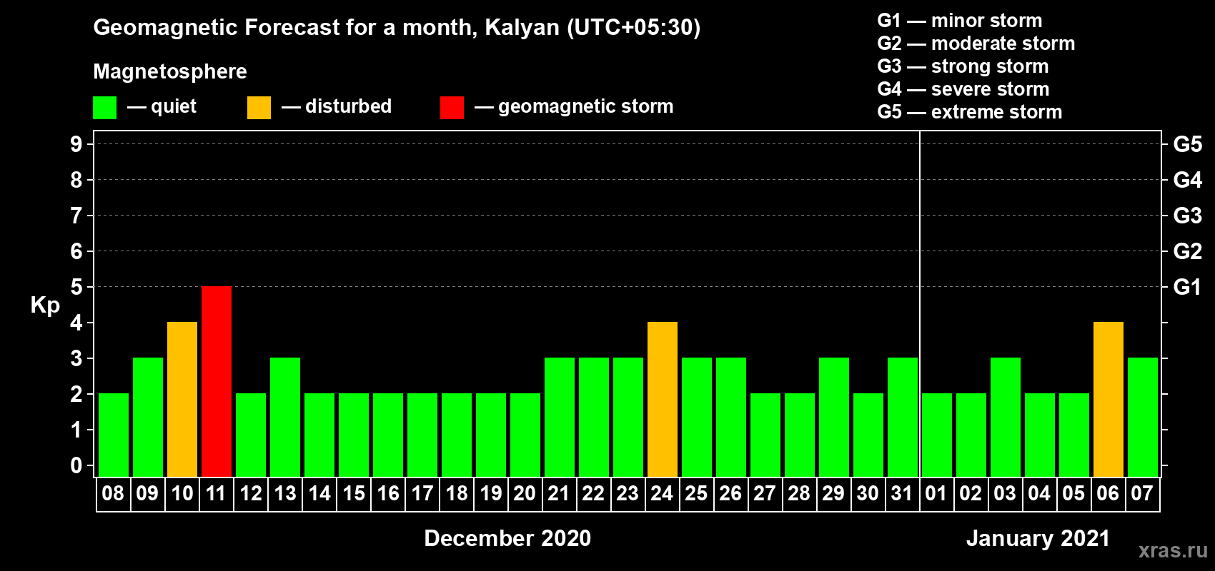 Geomagnetic storm forecast in Kalyan for Dec 08, 2020