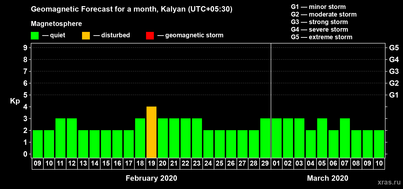 Geomagnetic activity forecast in Kalyan — Feb 09, 2020