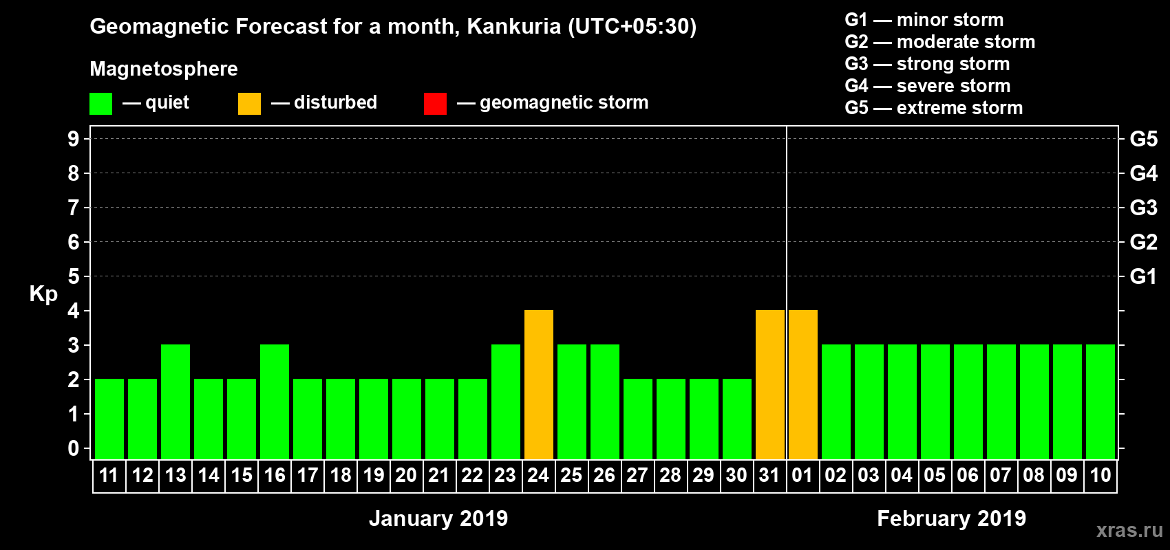 Geomagnetic storm forecast in Kankuria for Jan 11, 2019