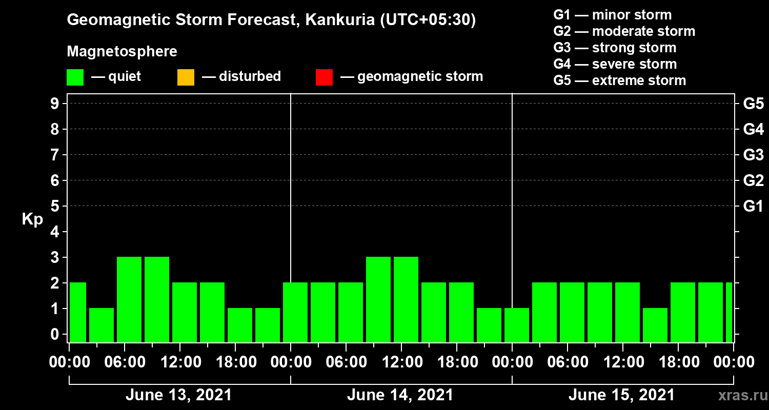 Geomagnetic storm forecast in Kankuria for Jun 13, 2021