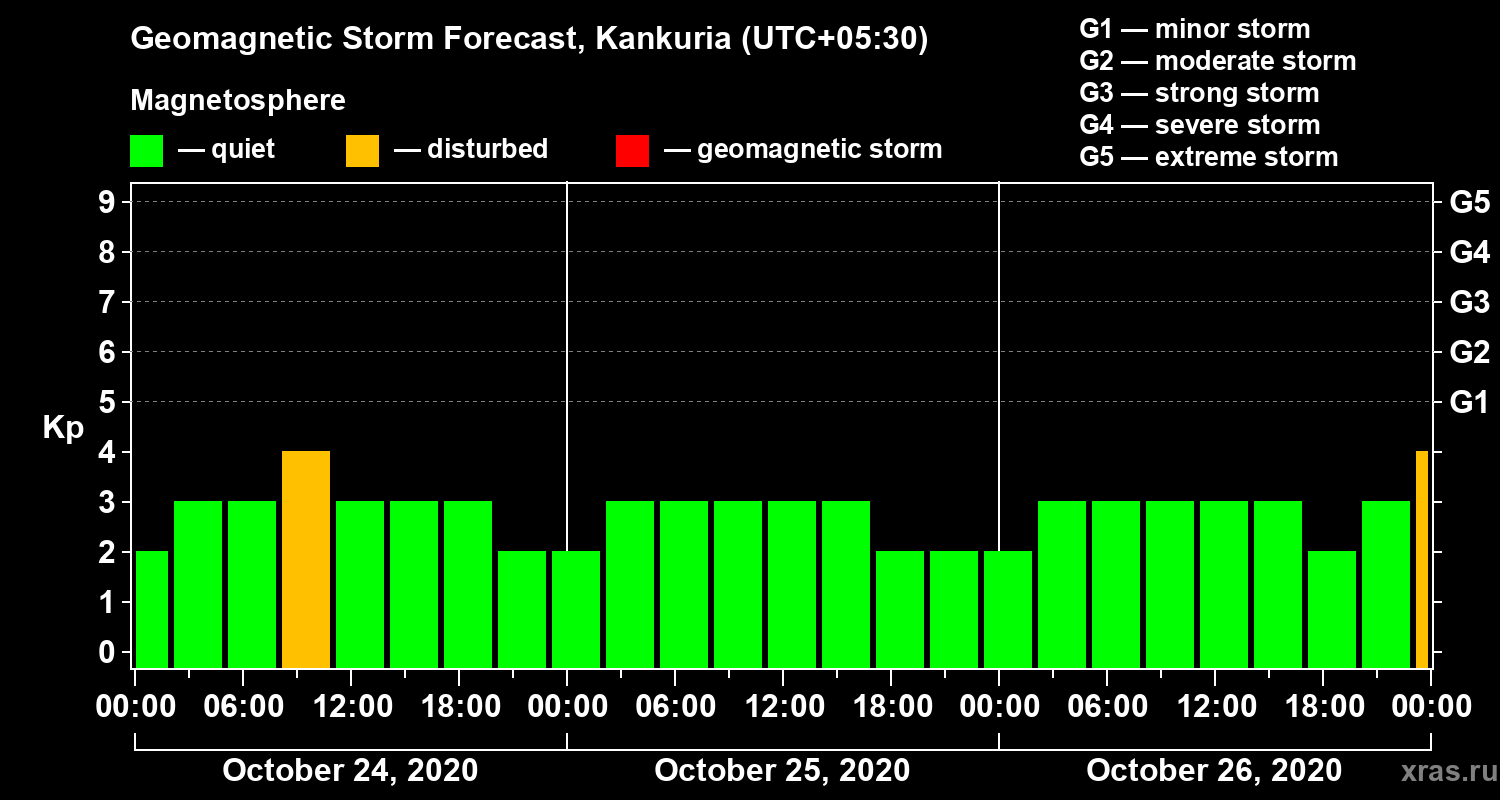 Geomagnetic storm forecast in Kankuria for Oct 24, 2020