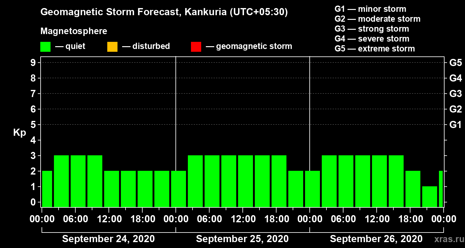 Geomagnetic storm forecast in Kankuria for Sep 24, 2020