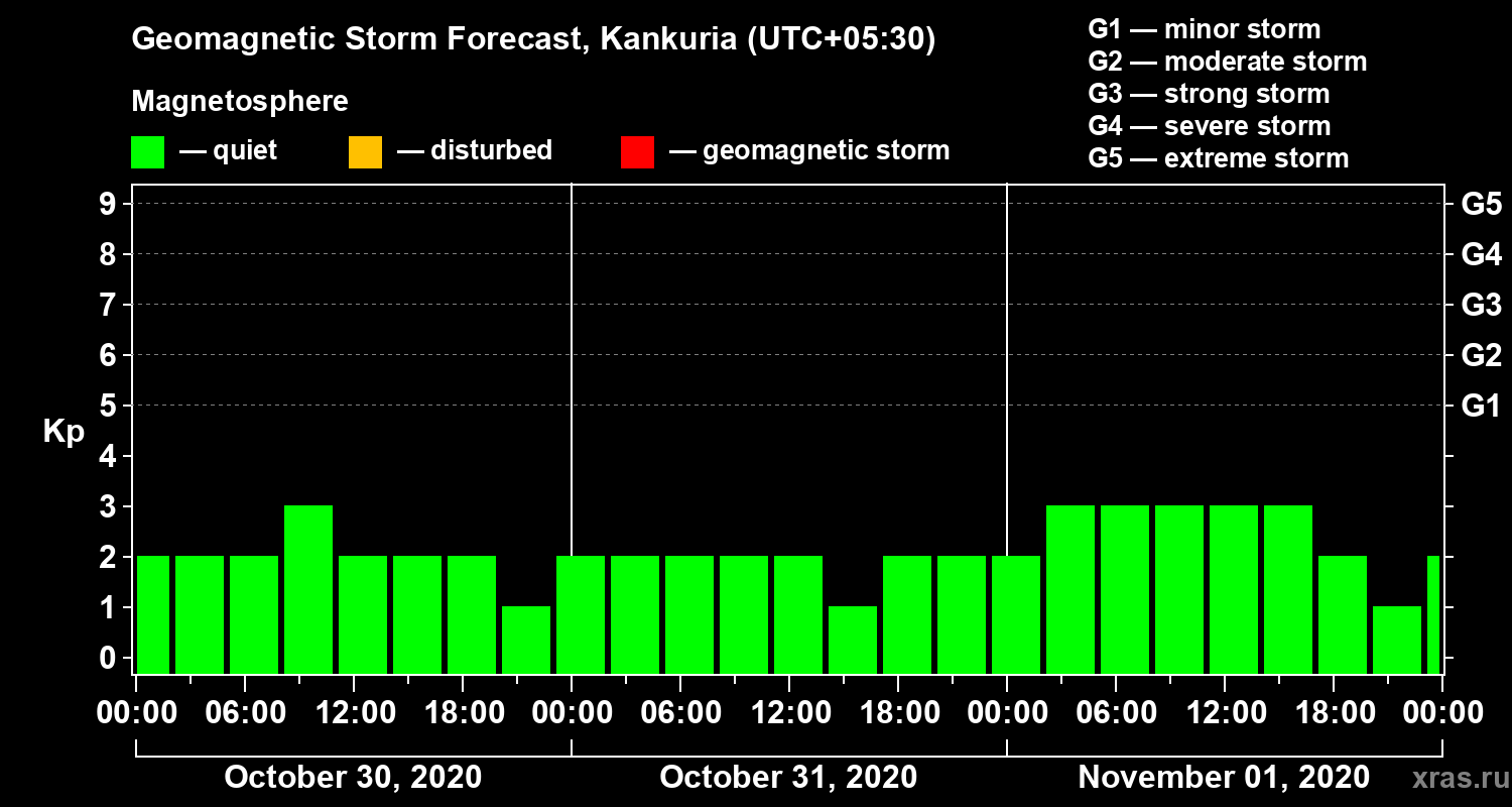 Geomagnetic storm forecast in Kankuria for Oct 30, 2020